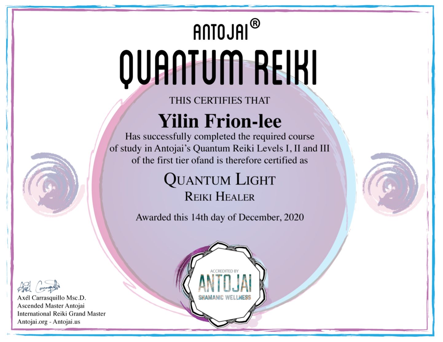 I am excited to announce that I have recently become a part of the Antojai® Shamanic Wellness team alongside Dr. Axél Carasquillo. Dr. Carasquillo - a respected mentor and close friend of mine - is the visionary behind the innovative modality at Antojai® Quantum Reiki and the Antojai® Quantum Academy.